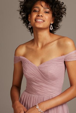 Off The Shoulder Pleated Net Tall Bridesmaid Dress David S Bridal