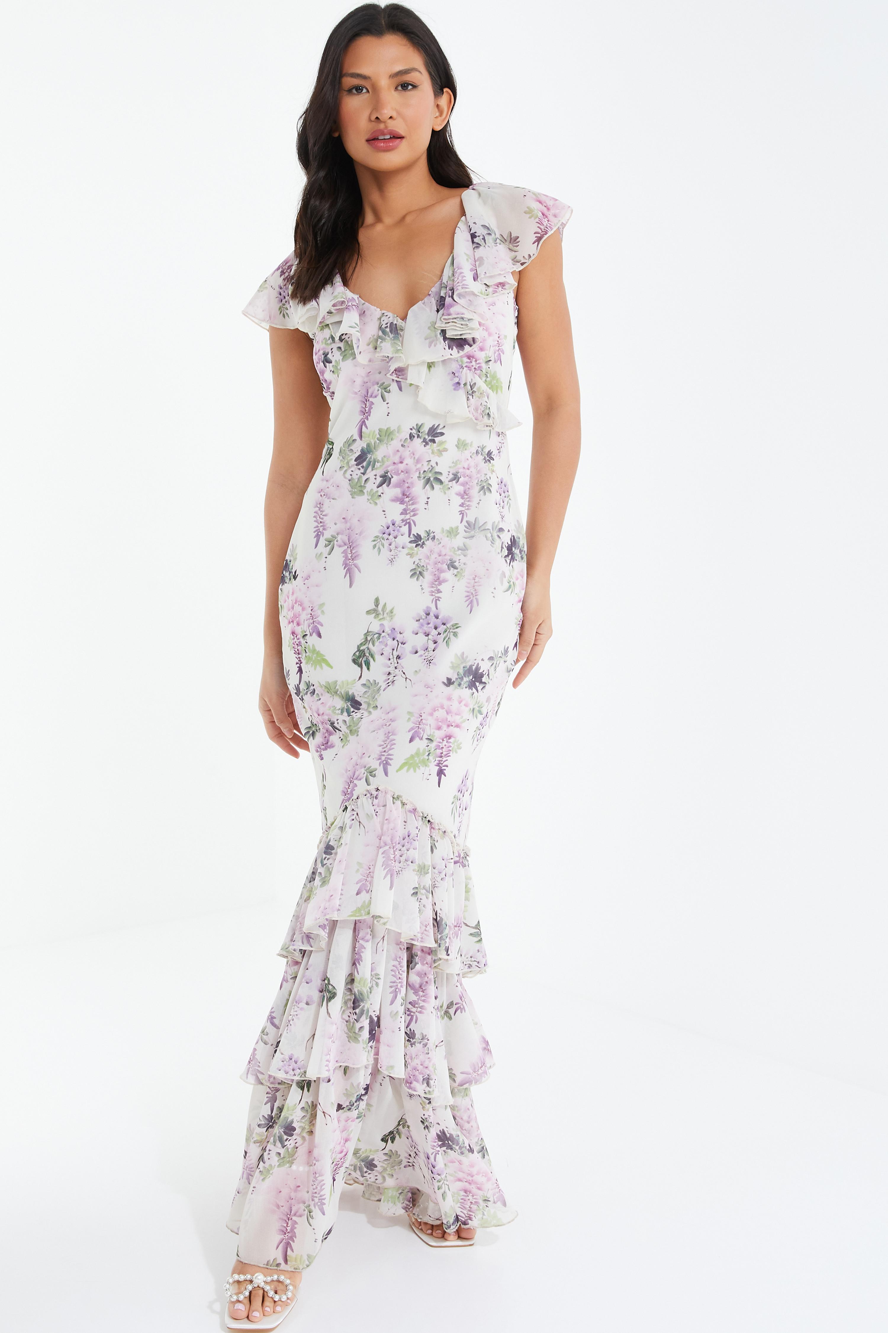 Buttercup White Strappy Floral Split Maxi Dress Club L London Usa